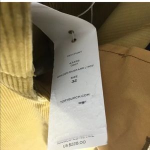TORY BURCH Devi Pant Mustard Yellow Corduroy Straight Trouser Pants, Size 32