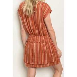 Beautiful Striped V-Neck Cap Sleeve Smocked Waist Tunic Dress