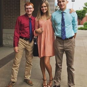 Peach boho style dress with crochet details. Gauzy fabric and very comfortable. Excellent condition. Size MEDIUM.