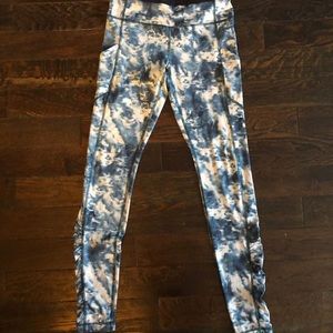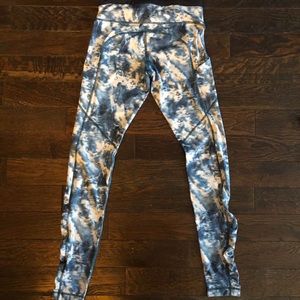 These lululemon speed tights are incredibly smooth and supportive! They feature a slick cloud design in a beautiful blue and white with a band that stands out and side ruching. The leggings have a waistband zip pocket, leg pockets that are big enough to hold a cell phone, drawstring waistband and reflective strip on the bottom. They are great for running and offer versatility in other workouts! 100% Luxtreme No stains, tears or noticeable pilling. Pet and smoke free home.