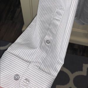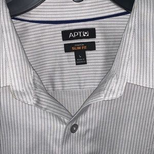 This is a gray pinstripe Apt.9 stretch slim fit long-sleeved button-down dress shirt!