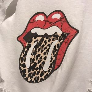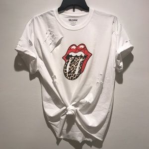 NEW Lips tongue distressed t-shirt. Size large pictured, Bella and canvas T-shirt.. decal and distressing done by hand... each shirt is a bit different ๐ Perfectly styled with jeans