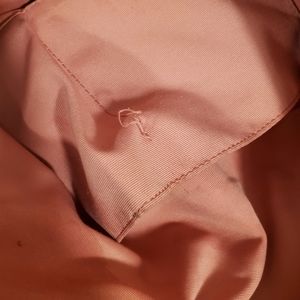 Cream colored, so soft, leather Coach bag with sassy Pink interior has tons of room to carry all your stuff and a wide belt and buckle style strap. No flimsy here just simple elegance that comes from a Coach hand bag. Excellent condition - small thread separation on pocket inside I noticed at picture time and light scuffing on bottom. See pics.