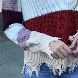 @katerusher @marierose327 distressed colorblock sweater is in stock and ready to ship! listing has been updated with price, photos of actual item, and measurements. check it out!