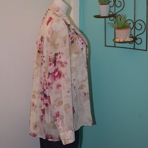 Very comfortable Georgette style, cream and pink floral blouse, buttons enclosed with a fully pleated back. The shirt's tag was removed.