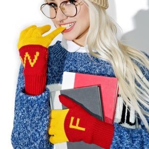 Wildfox Couture Super Fries Finger Food Gloves are finger lickin’ good. These cozy gloves feature an extra plush knit construction, vibrant coloring and WF initials on each hand. New with tags.