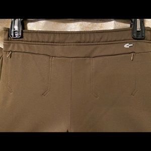 Comfortable chocolate brown Small track jacket and pant suit! Perfect condition, no flaws, two zip jacket pockets, two cute booty zip pockets. Thin Peachy pink thin trim as pictured. 100% Polyester