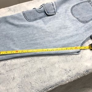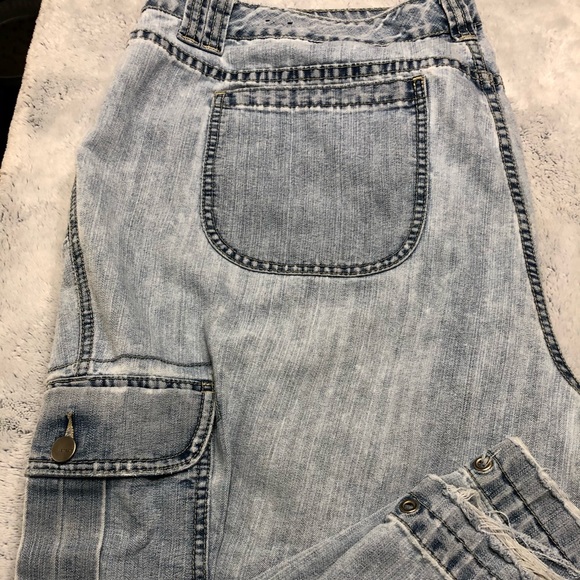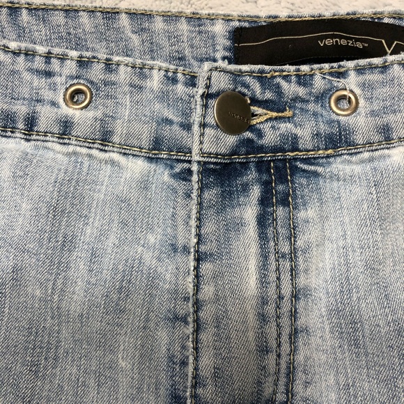 Venezia cargo jeans, women’s plus size 22, regular length w/cargo pockets on each side (see pics for measurements). Heavily worn, light wash soft denim (see pics for imperfections)! Also missing drawstring at waist at at bottom of legs! Please look at pics carefully, just want to make sure customers are aware of the wear on this item, still very functional and comfortable pair of jeans!!! Please feel free to make offer, price negotiable!!!!