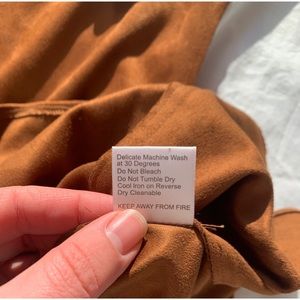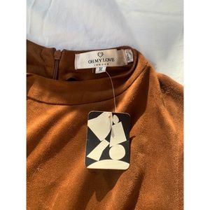 This super cute faux suede tank dress is from Oh My Love, purchased at Urban Outfitters. NWT, and carrying a retro 70’s vibe with a flattering silhouette and cut outs on the side. Wear it as is or layer it over a black turtleneck for winter!