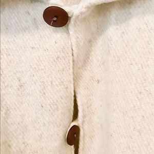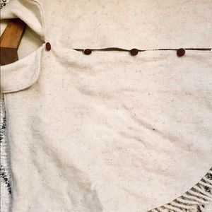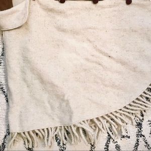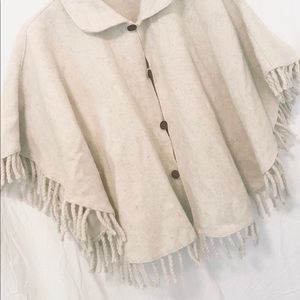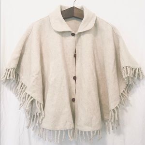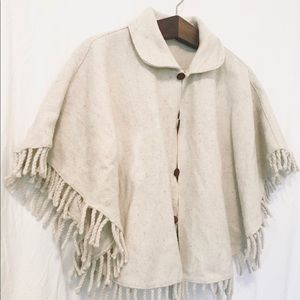 Vintage handcrafted knit wool poncho by Artilana, with fringe, open front and buttons. In excellent condition. Free size.