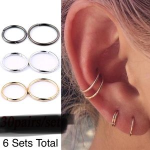 NWOT! 6 Sets of Simple Hoop Cartilage/Lip/Earrings