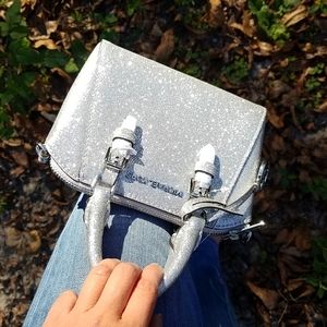 •Super sparkly glitter leather small crossbody in silver