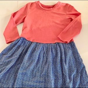 Coral color Jersey Top with 60% cotton and 40% polyester skirt with blue and white circles