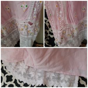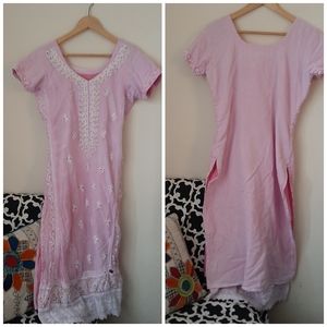 Pink Embroidered Handmade Tunic Dress Indian Boho