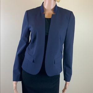 Classic Rebecca Taylor Laura jacket in navy. Open front with tapered waist and two faux pockets. Flared peplum back. Lined. Size 6 and NWT. Retail $395.