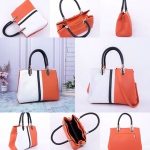 @clittle4031 Hi! These are brand new. This purse has a zipper pocket on the back. Has two zipper closures inside and two additional inside pockets. Also comes with matching detachable shoulder strap! Thanks!