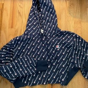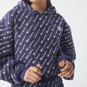 Champion Blue Reverse Weave All Over Print - Cropped Hoddie Sweatshirt - Never Worn - Great Condition - Sold Out Hoodie
