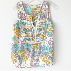 Modcloth Floral Pleated Lace Button Down Tank Top