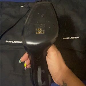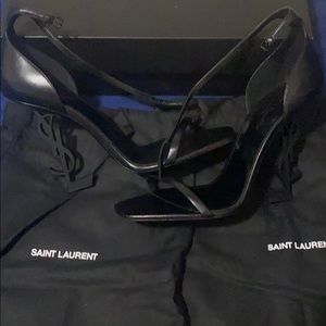 Here’s a black pair of YSL opyum heeled sandals in matte black. I wore them 1x for literally 1hr ....they’re authentic purchased at Barney’s New York.... I do have the box and dust bags for them ...thanx for looking !!