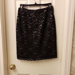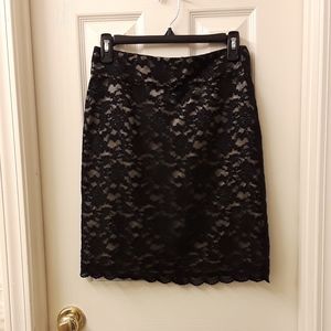 Beautiful Banana Republic black lace skirt with beige lining and scalloped edge. New with tags! Size 2P.