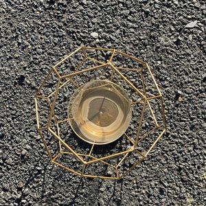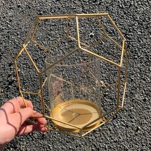 NWOT. Never used. Metallic gold geometric frame with glued in glass vase. Set of 2. Perfect for table pieces or to place in a candle. Price firm unless bundled!!!