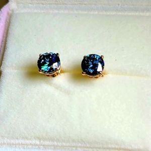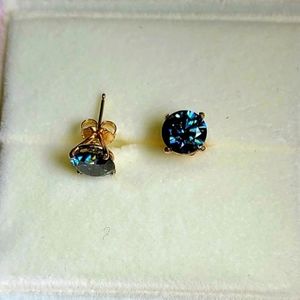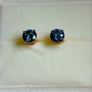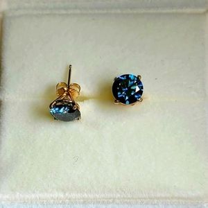 Solid 14k gold 2ct royal blue moissanite earrings
