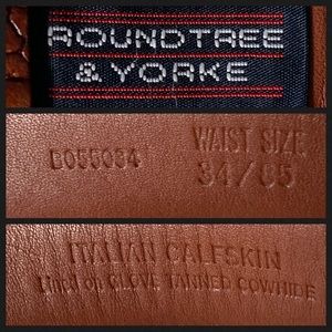Roundtree & Yorke Italian Calfskin Leather Belt 34