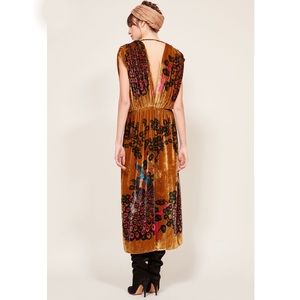 Gorgeous printed velvet midi dress featured in a kimono-style silhouette with V-neckline and back for added detail.