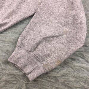 There is a stain on the front, and both sleeves. See photos for exact condition.
