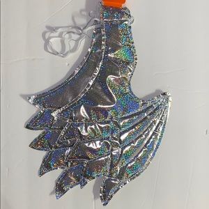 BRAND NEW WITH TAGS unicorn 🦄 headband with silver ears and horn. The back has three layers of tule. One is aqua, the other is purple and the third is an awesome pink. There are little tufts if fur below the horn as well. The wings are covered in a lightweight sparkly silver that attaches to the arms at the shoulders. This outfit can be worn by both children and adults.