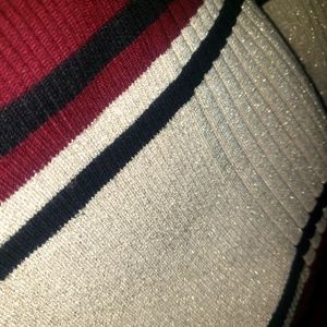 Beautiful trio color sweater dress. Tan section has gold sparkles. (Last photo shows this) EUC Dress length is 38" from shoulder to hem, with room for stretch. Sleeves are 25" from shoulder to end of sleeve. Accessories sold separately.