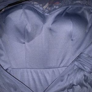 See pictures for complete description - it is a periwinkle color. Perfect 14 petite floor length gown. New without complete tags. It is a great Mother of the Bride or Groom dress.