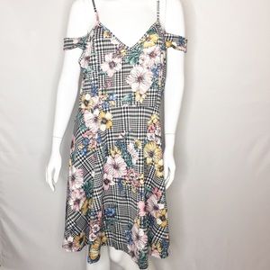 Cold shoulder mini houndstooth floral print with spaghetti strap