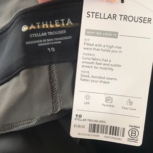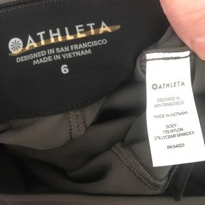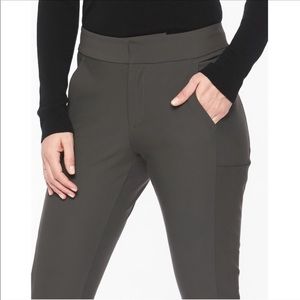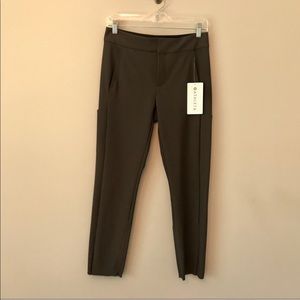 High rise pants in a smooth and supportive fabric. Front and side stash pockets. Color is Arbor Olive. Inside logo marked to prevent returns.