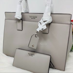Kate spade NY large slim bifold wallet taupe more gray and Cameron large satchel crossbody set