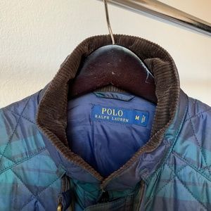 Accented with corduroy trim, this lightweight quilted vest is a stylish choice for transitional days. Signature Lauren Ralph Lauren touches, like monogram snaps, add instant sophistication.