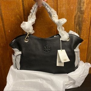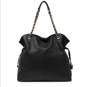 Tory Burch Bombe Slouchy Large Leather Tote -Black