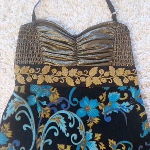Size 0 Free People gold and velvet floral strapless mini dress (has halter top option). Excellent condition! Accepting offers!