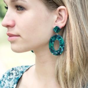 New with tags Sea Green Tortoise Shell Resin Oval Hoop Earrings.
