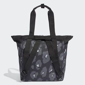 Modern floral graphics inspired by Stella McCartney give the statement look a feminine edge. The versatile tote keeps all your gear organized with multiple pockets and an interior laptop divider. Dimensions: 6" x 19.5" x 15". Volume: 22.75 L. 100% recycled polyester plain weave. Front zip pocket. Internal padded laptop compartment. Slip-in side pockets. Dual carry handles.