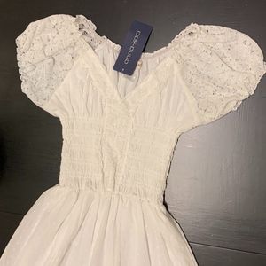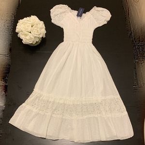 NWT Anna Kaci Bohemian Lace Trim Peasant Dress White S. 100% Cotton.