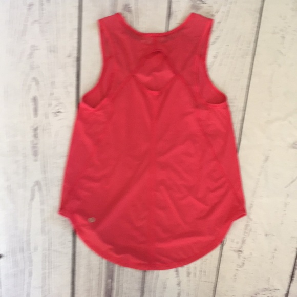 Darling coral/salmon color top. Super soft material with mesh insets on shoulder and back. Fun open detail on back. No size tag but armpit to armpit 16 inches. Shoulder to hem 24 inches. Excellent condition. 💥Offers welcome💥