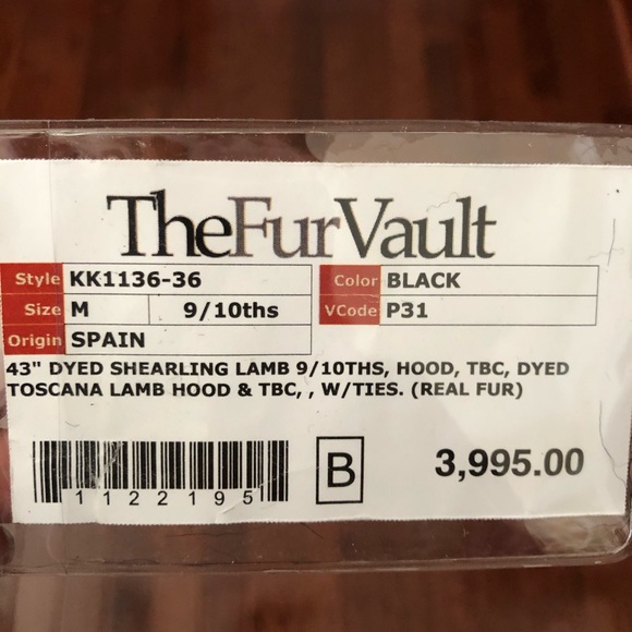 Stunning Black Shearling Lamb Genuine Fur Coat with Hood. Size 6 (Medium). 43 inches long. Two pockets. One hook closure at chest and one tie closure at the waist. Fur cuffs at the wrists. Excellent condition. Worn only a few times. Comes from a pet and smoke free home.
