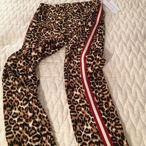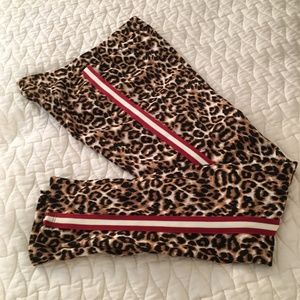 Trending animal print pants with an added red/white tuxedo stripe for more pizazz!