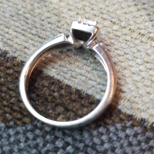 This ring says it all w/o having to mortgage the house. Size 6.75 ring in 10kt white gold (so its not gonna bend the 1st bottle top you wrestle) and 1/4 CTW diamonds in white. The pictures don't do justice to the sparkle!