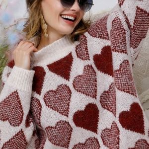 Soft and cozy red hearts sweater. Perfect for Valentine's Day!