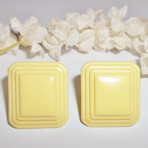 VINTAGE Earrings Yellow Square Post Art Deco Jewelry Retro Find Fashion Set 7044
