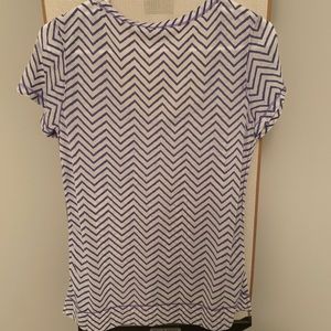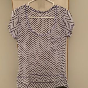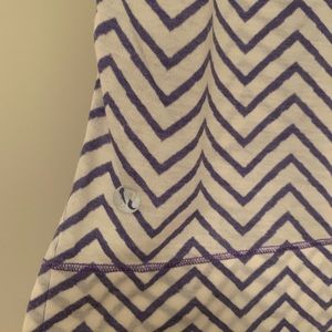 Lululemon white/purple short sleeve shirt. Note: the tee is sheer and light, shorter in front and a bit longer in back.