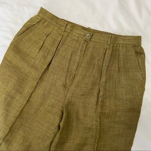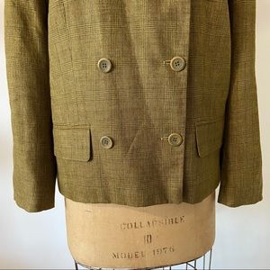 Vintage Linen Pantsuit by Jones New York in olive and brown plaid.