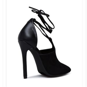 A hybrid between a pump and a bootie 🖤 We don't really have a name for that yet but so far the options are either Bootie or Pump, and those are sticking. Regardless, this is the perfect style for colder months to still keep the sexy vibes going. Outside heel height is 4.5 inches 😜 Brand New in Box. Thanks for looking!